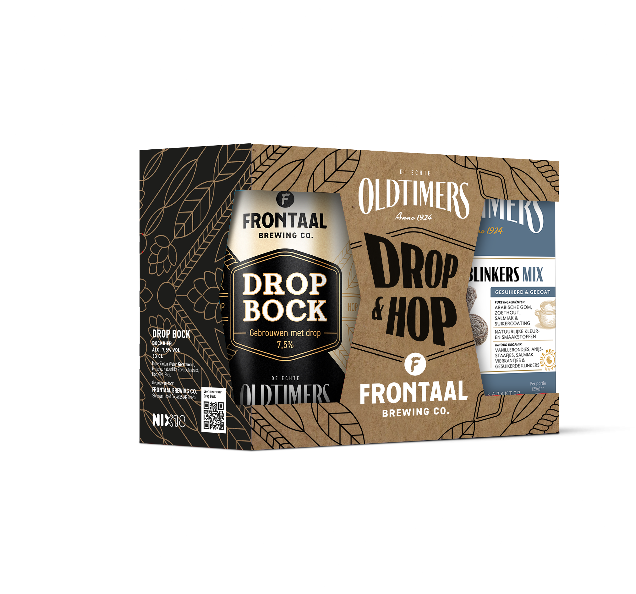 Twee geliefde Nederlandse klassiekers komen opnieuw samen in dit bijzondere bockbier van Frontaal Brewing Company en Oldtimers drop. Drop en hop klinkt lekker toch? Dat dachten de brouwers van Frontaal ook. In samenwerking met de makers van Oldtimers drop bedachten ze dit unieke Bockbier!