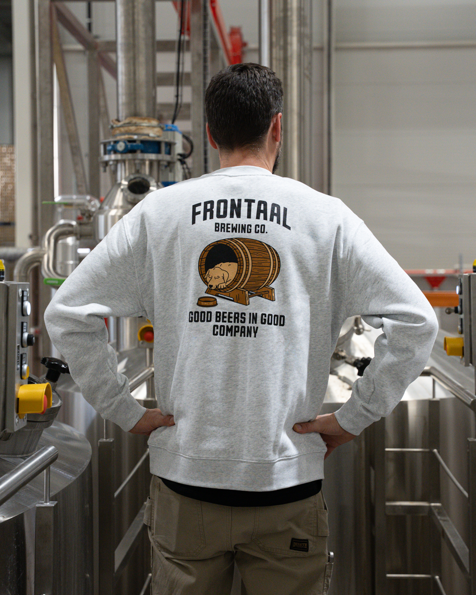 De voorkant is subtiel bedrukt met het Frontaal Brewing Co. logo op de borst.